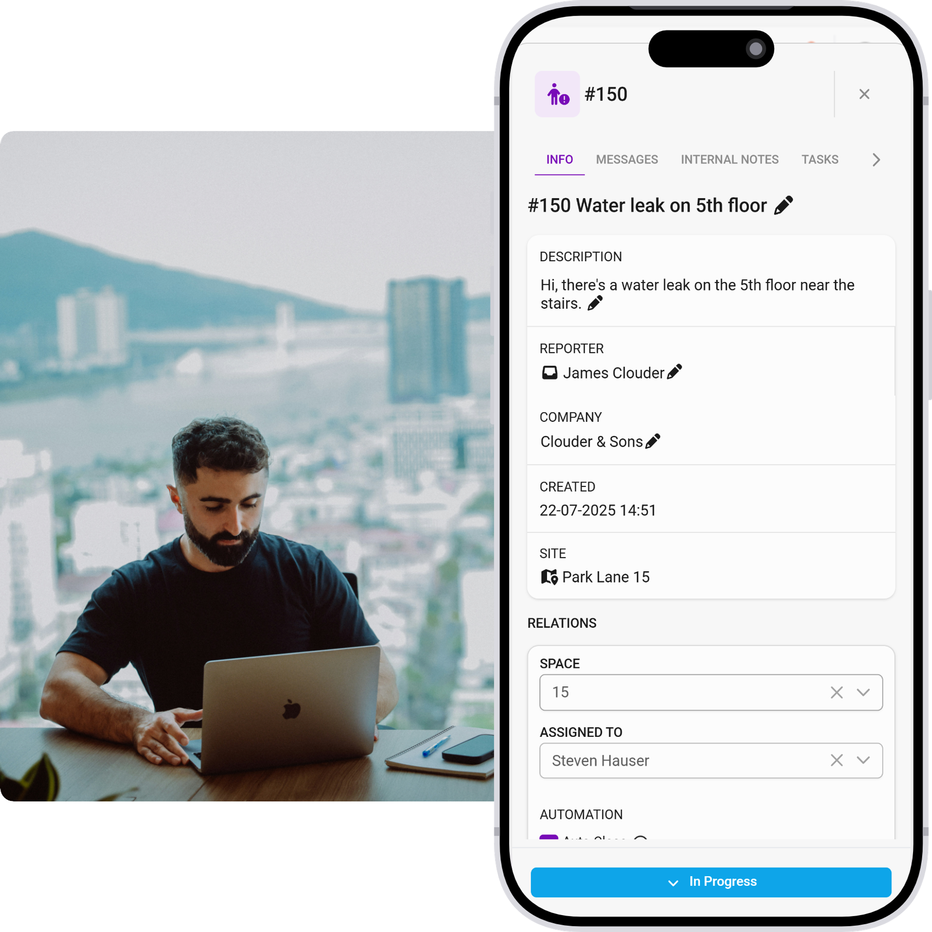 • Tenant requests scattered across WhatsApp, phone, and email; things slip through.